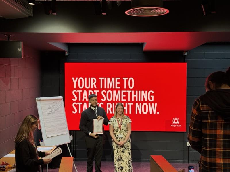 - Second Image: The King’s Trust three week c2c work experience ends with a presentation and certificates, presented by Jessica Lake, c2c Head of Learning and Development