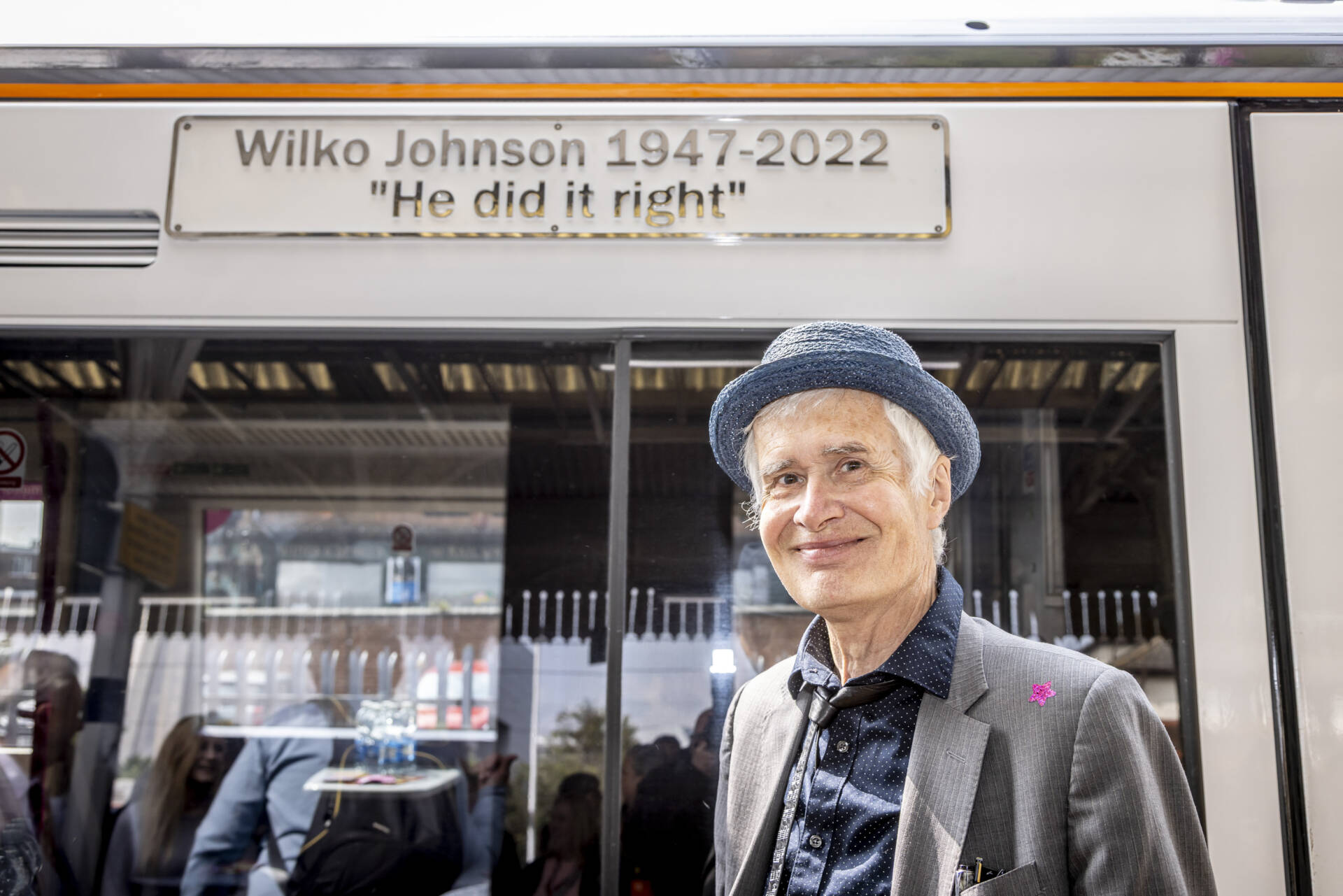 Local rail operator Trenitalia c2c is proud to have honoured rock ‘n’ roll icon, Essex native and co-founder of the legendary band Dr. Feelgood, Wilko Johnson, with a specially commissioned train nameplate at a ceremony at Southend Central station today (Monday 9 June).